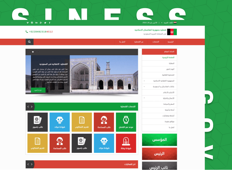 معاينة تصميم لمشروع قنصلية أفغانستان – موقع خدمي اخباري تفاعلي لمتابعة خدمات القنصلية والتقديم عليها ومتابعة أخر الأخبار