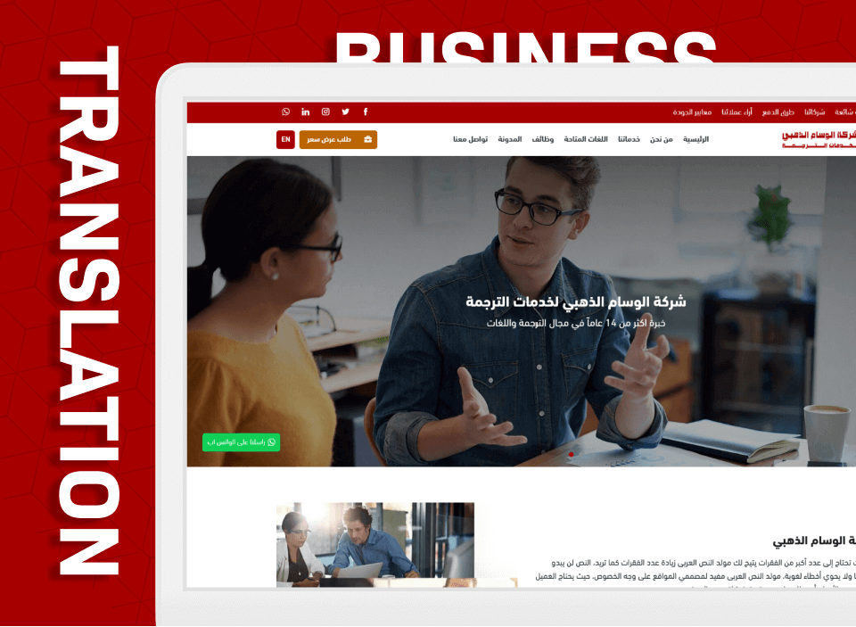 معاينة تصميم وتطوير قالب تعريفي فريد لشركات الترجمة والأبحاث